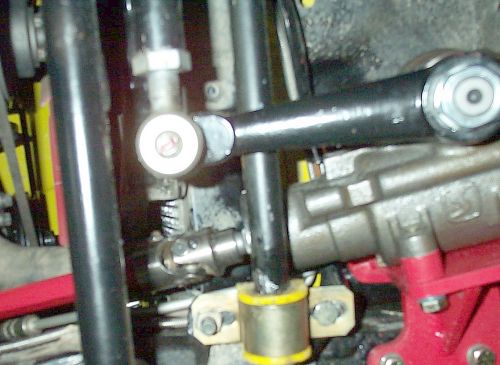 This picture shows the extra clearance I gained by moving the steering box one inch forward.