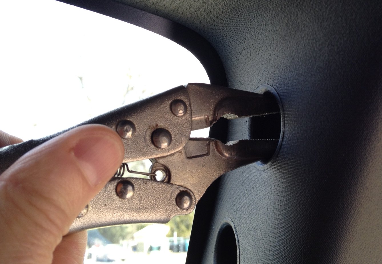 Front-remove-side-bolt Use a needle nose vice grip to grab extract bolt otherwise you will probably drop it down the hollow pillar.
