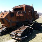 Sleeping in suspended animation somewhere in a little borough in Lancaster county in the state of Pennsylvania is a cross between a 19th Century Steam Shovel with caterpillar tracks and a World War I British Whippet Tank. Built for a zombie apocalypse this monstrous diesel powered rusty steel Rat Rod of a 4×4 with 4-wheel steering sitting up on tracks lies in wait for it’s next mission of destruction.